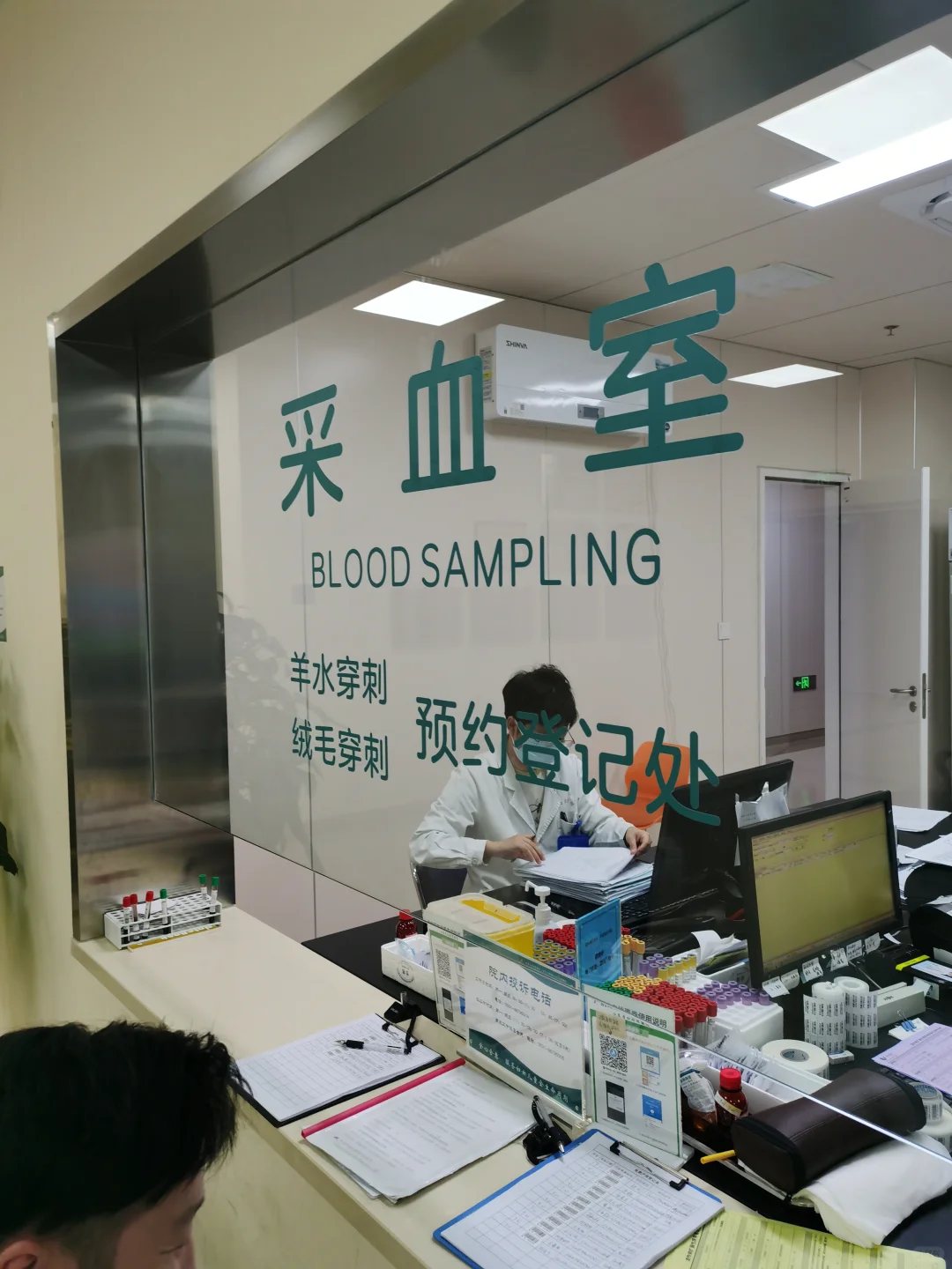 产前诊断中心的号,然后就可以在侯诊区等待叫号了,❣️挂女方的号就可以!前台小姐姐不清楚流程,给我老公也挂了!这个科室人不多,不需要排太久。直接跟医生说要做基因筛查,就会给开一张图1的单子