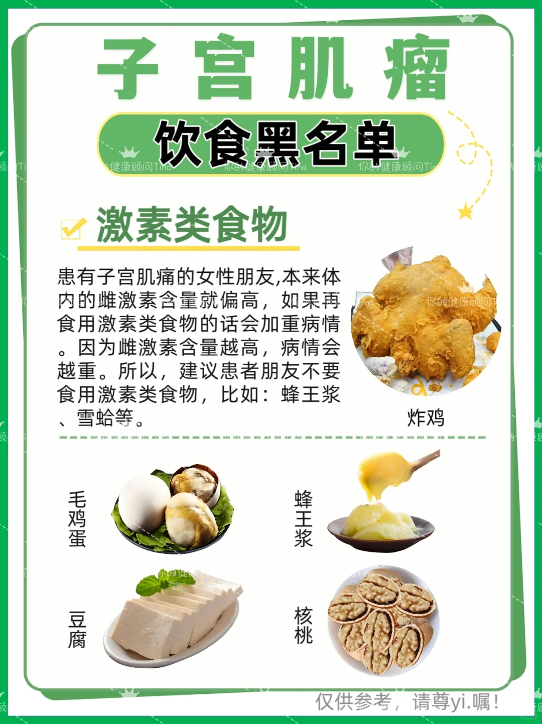 做为一个刚做了手术的人,我每次复查都问医生哪些能吃那些不能吃,我不知道中医怎么说,西医告诉我都可以吃,都可以,都可以。所以这么多不能吃的依据是什么?中医吗?吃了重要要忌口,那没吃中药还忌口?堵住嘴也没用,肌瘤还有遗传基因在里面。所以医生说都能吃,控制量,不能胖,不要暴饮暴食。以上自我感受,可听可不听哈