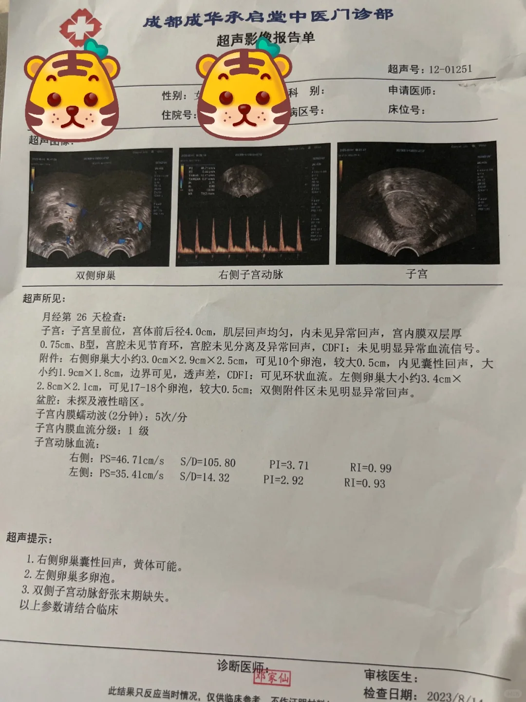 话说回来,子宫动脉血流也是小红书好多姐妹建议做的一个检查,当天在承启堂做完理疗,我想着还有时间就做个子宫动脉血流的检查吧,查出来是血流1级,算差的了,3级是最好的,给王医生看她也叹叹气,说没想到我还有这个问题,以为我正常的,给我开了点阿司匹林和中药。