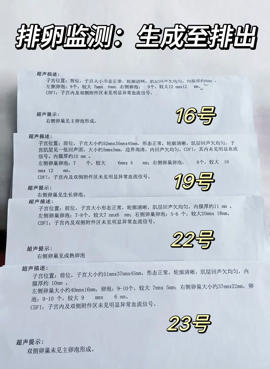 每家医院的书面报告说明都不一样,简单来说>18mm就可以安排同房,除了卵泡的成长情况,还需要看数量以及成熟后能不能正常排出。姐妹们可以问下医生什么时候来看排出情况,👩🏻⚕️会根据前面的检查结果推算日期的,排出后试纸也会转弱。