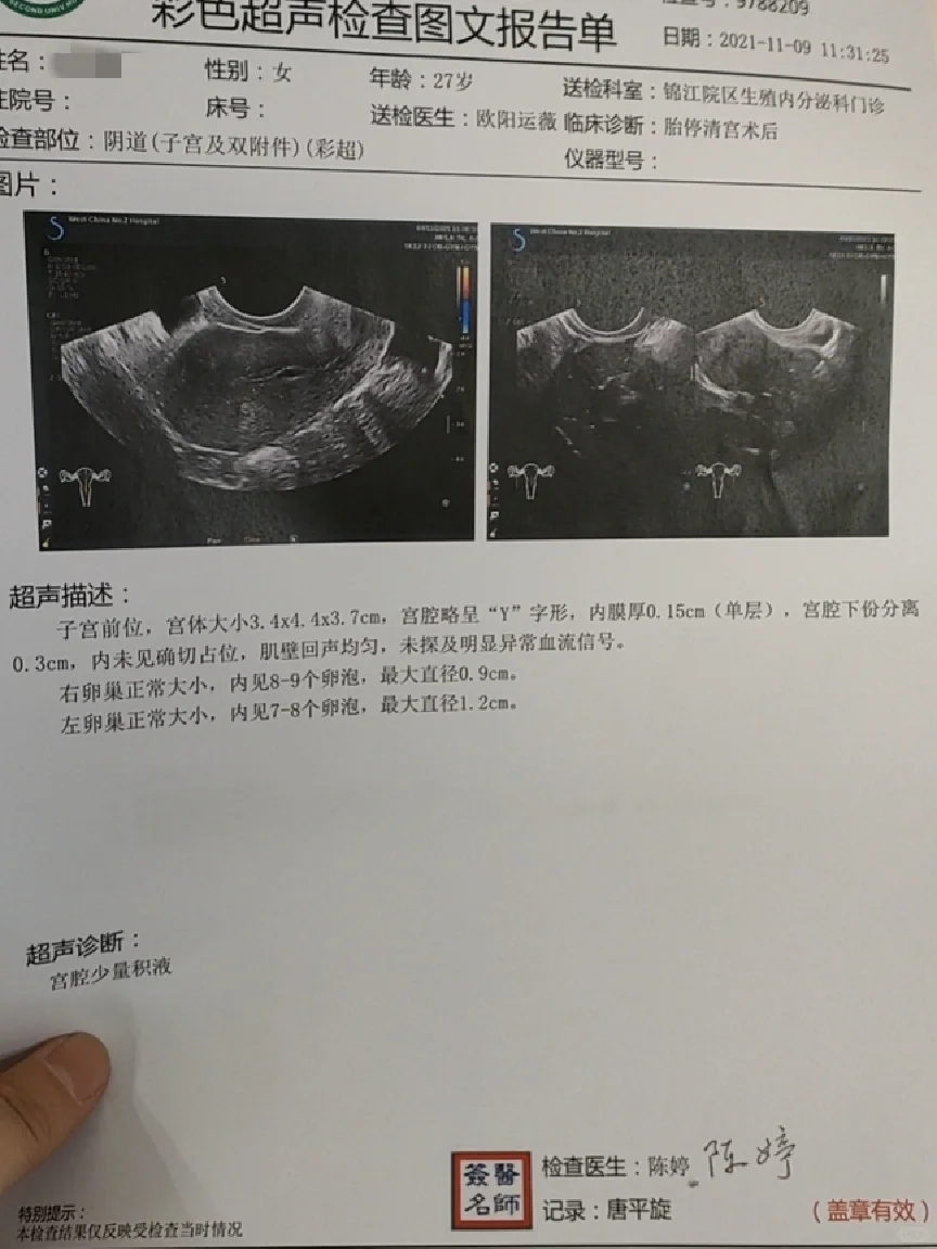 ,直接忽略了,我说还有这次姨妈不正常,发黑血块多,肚子痛五天,来了九天 ,来之前也有褐色白带,她就抓住了九天,然后给我开了个B超,说没啥子大问题,给我开了妇科再造胶囊。最后我问能不能下个月备孕,她说半年。结论:华西医生惜字如金,我感觉自己没事找事